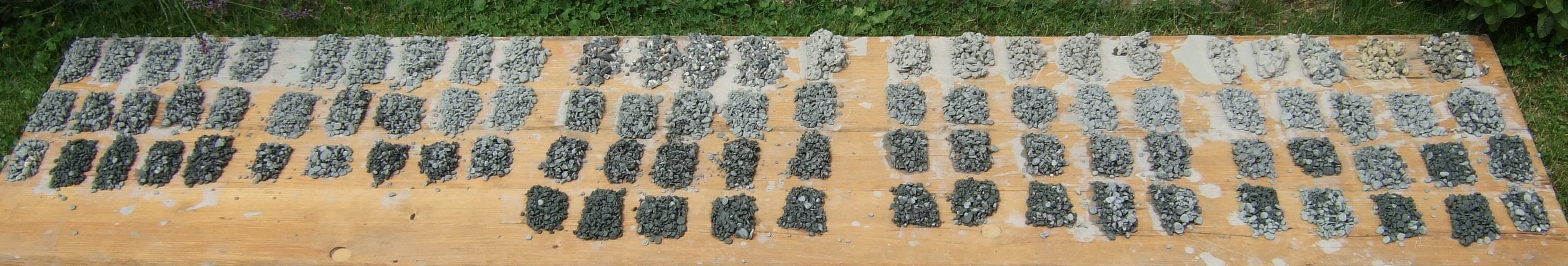 Bodenproben alle 2 m bis in eine Tiefe von 180 m (von rechts nach links, oben