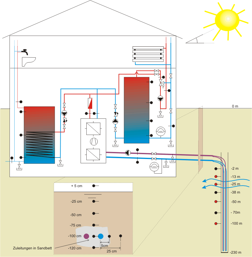 Wärmeleistung und Temperaturen Erdsonde in 100, 38 und 25 m Tiefe möglicherweise fehlerhaft, siehe Anlagenstatus